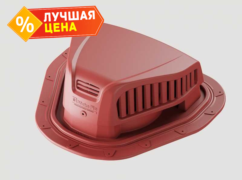 Отличный выбор, чтобы обустроить систему вентилирования подкровельного пространства и сделать яркий акцент в дизайне. Приглушенный красный оттенок аэраторов визуально усилит цвет красно-коричневой кровли.
