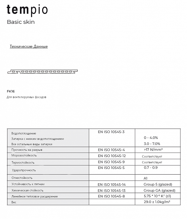 Керамическая плитка для вентилируемого фасада, система FK-2B-5/16, Tempio