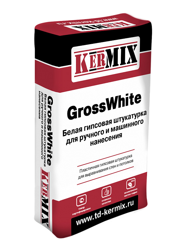 Гипсовая штукатурка GrossWhite 2650, белая, Kermix