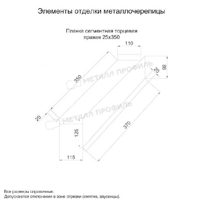 Планка сегментная торцевая правая 350 мм (PURETAN-20-RR32-0.5)