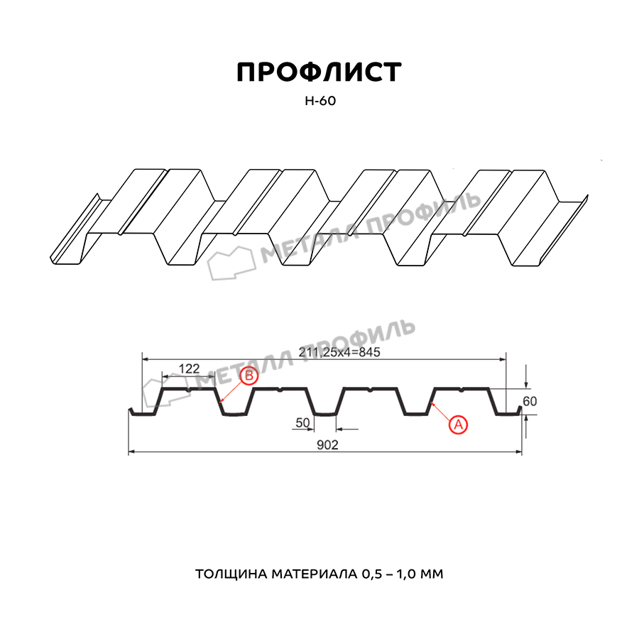 Профиль Н-60 обладает оптимальными характеристиками прочности и устойчивости к внешним воздействиям, что делает его идеальным выбором для кровельных и фасадных работ.