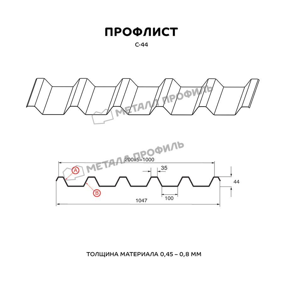 Профиль С-44 обладает высокой прочностью и устойчивостью к воздействию различных погодных условий, что делает его идеальным выбором для наружных работ.
