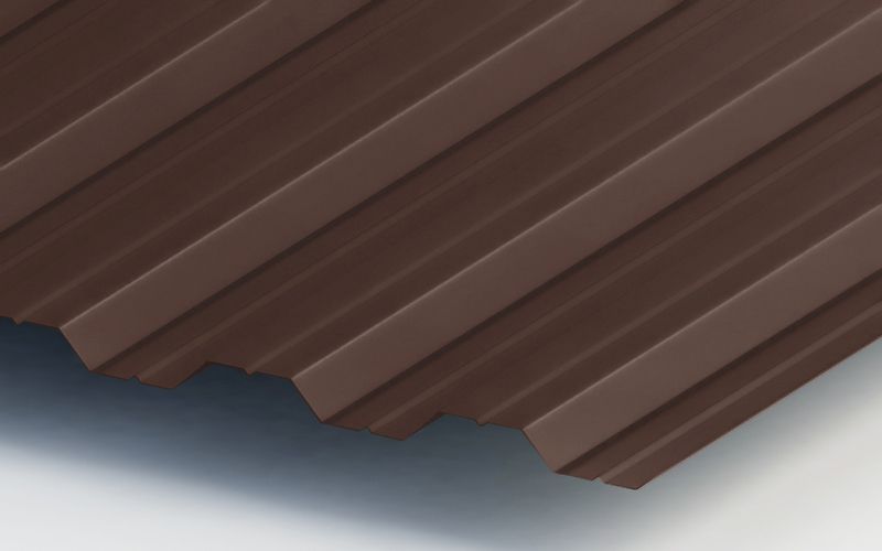 Цвет Ral 8017 шоколад придаст вашей крыше элегантный и стильный вид, который будет гармонировать с любым дизайном здания. Профнастил ЮджинСтрой НС35 легко монтируется и не требует особого ухода, что делает его идеальным выбором для долгосрочного использования.