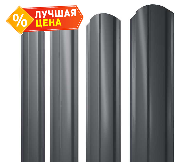 Штакетник Полукруглый Slim фигурный Grand Line 0,45 Полиэстер RAL7024 Мокрый Асфальт