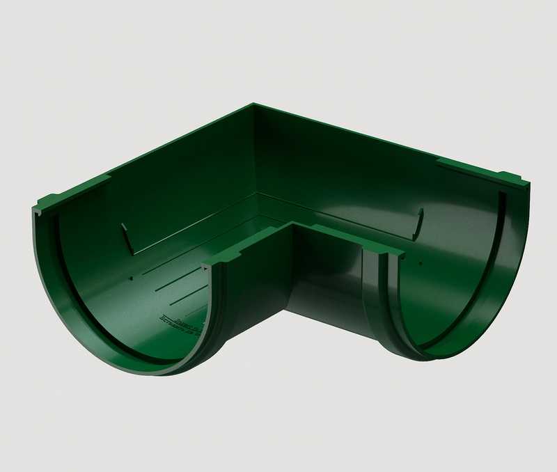 Угловые элементы устанавливаются как на внешних, так и на внутренних углах кровли и предназначены для соединения желобов.